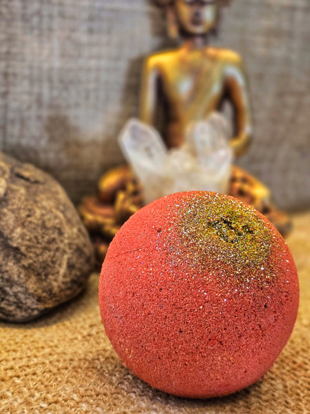 All Chakra Bath Bombs have their respected magical crystal in the center of the bomb to charge your water during your journey. Please remember to remove this gem from the bath for your safekeeping & continued healing.