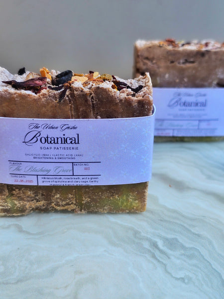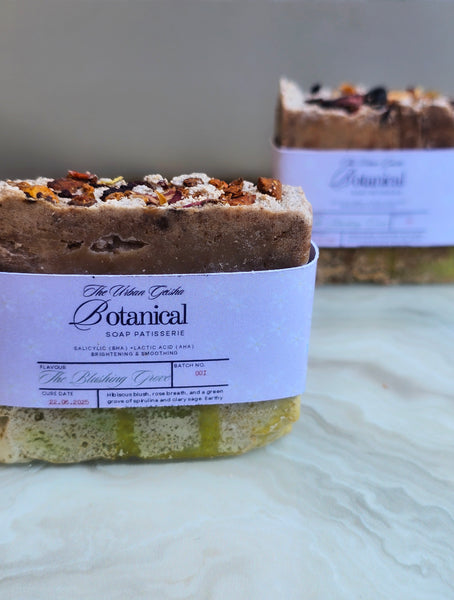 Avocado Oil, Coconut Oil, Shea Butter, Mafura Butter, Castor Oil (Hexane Free), Sodium Hydroxide, Salicylic Acid, Lactic Acid, Propylene Glycol, French Green Clay, Rhassoul Clay, Rose Geranium Essential Oil, Clary Sage Essential Oil, Pear Oil, Hibiscus Powder, Moringa Powder